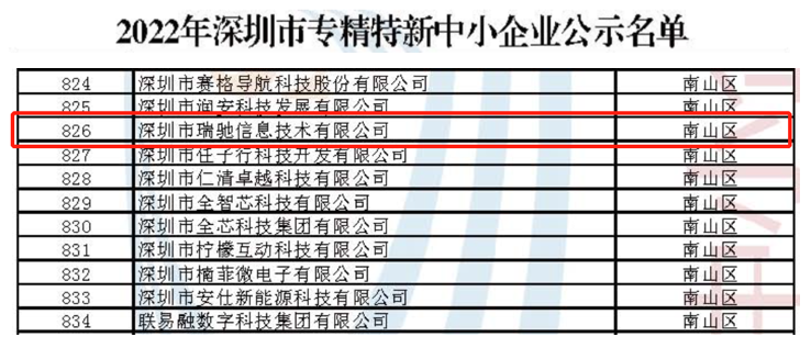 喜報(bào) | 瑞馳獲評 深圳市2022年度“專精特新”中小企業(yè)