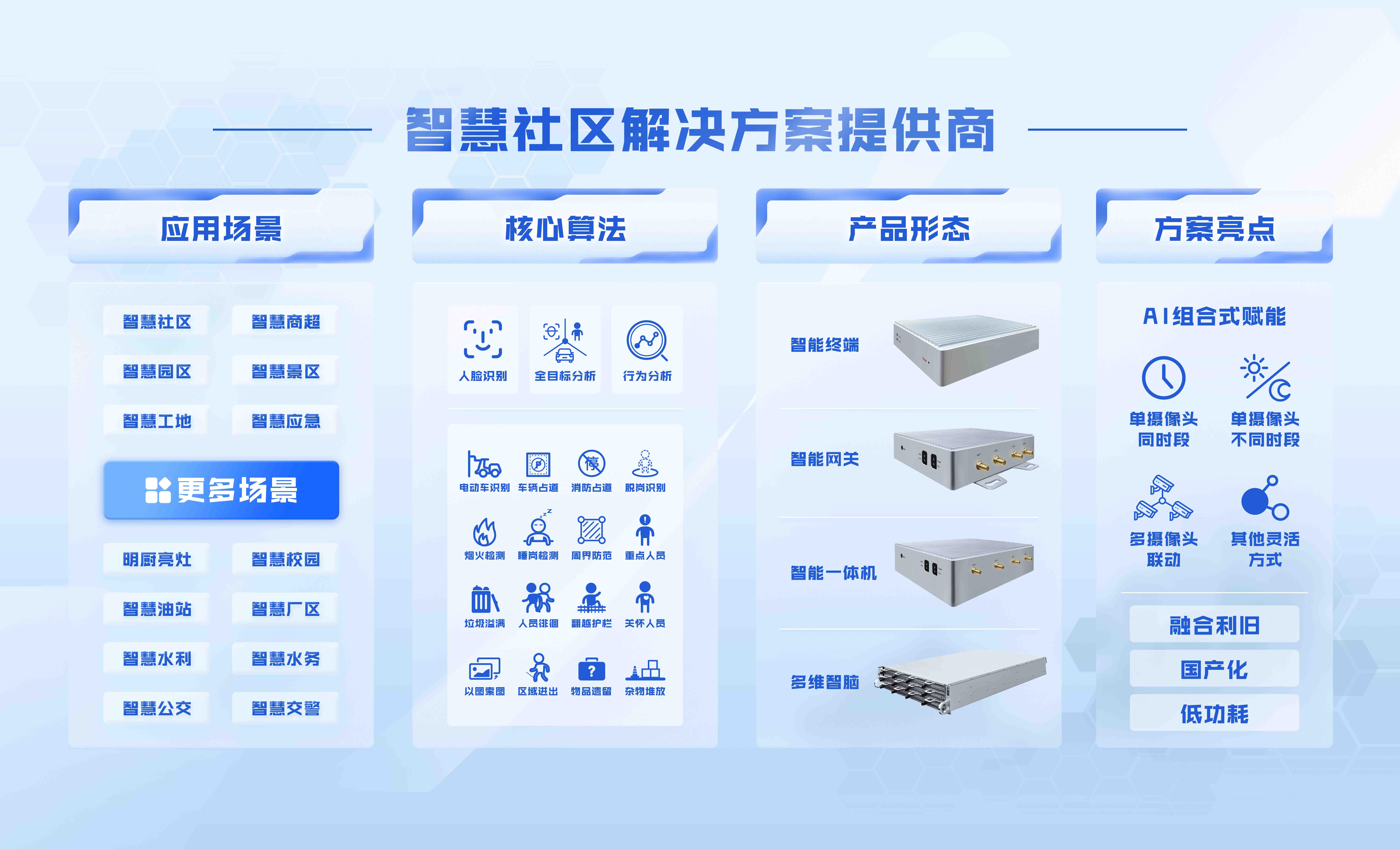此次將動(dòng)態(tài)演示多維智腦一體機(jī),將集智能視頻分析、視頻監(jiān)控存儲(chǔ)、業(yè)務(wù)系統(tǒng)應(yīng)用于一體的多維度應(yīng)用產(chǎn)品進(jìn)行演示,該產(chǎn)品能為不同行業(yè)用戶提供一體化的智能分析產(chǎn)品解決方案,滿足不同人群的使用場(chǎng)景需求。