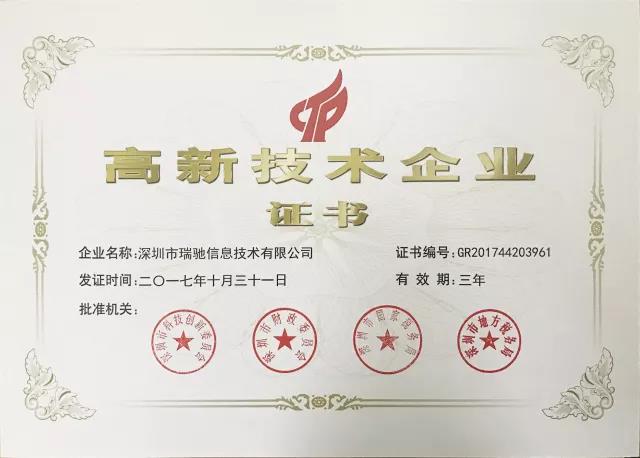 高新技術(shù)企業(yè)認定嚴苛,企業(yè)必須同時滿足知識產(chǎn)權(quán)、科技成果轉(zhuǎn)化能力、企業(yè)經(jīng)營成長性指標(biāo)等條件。瑞馳通過嚴格審核,近日已成功獲取了由深圳市科技創(chuàng)新委員會、深圳市財政委員會、深圳市國家稅務(wù)局及深圳市地方稅務(wù)局聯(lián)合頒發(fā)的《高新技術(shù)企業(yè)證書》,正式晉升國家高新技術(shù)企業(yè)行列!