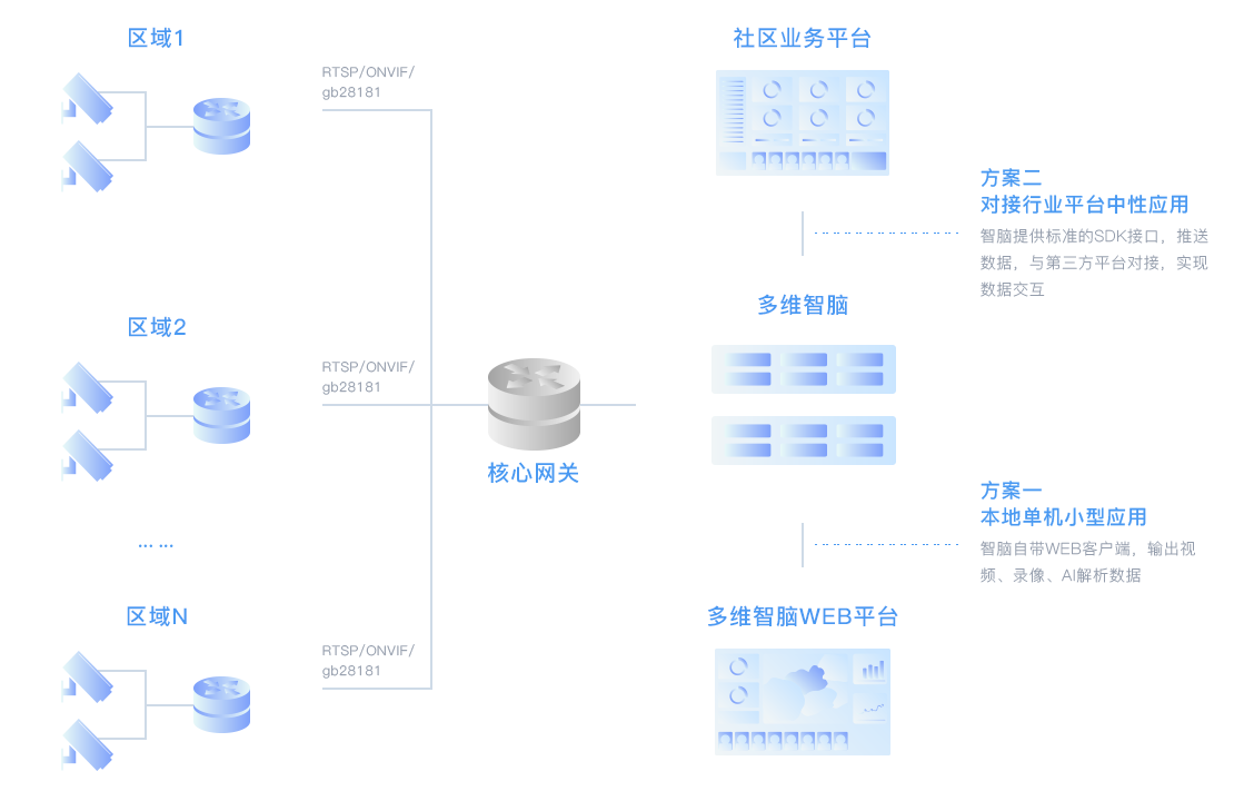 瑞馳不但給合作伙伴提供智慧社區(qū)/園區(qū)所需的邊緣人臉?biāo)惴?、全目?biāo)結(jié)構(gòu)化和智能視頻分析的算法,滿足老社區(qū)攝像頭的利舊賦能升級,還可以提供多維智腦一體機(jī),滿足視頻監(jiān)控,視頻存儲以及算法賦能一體化解決方案。